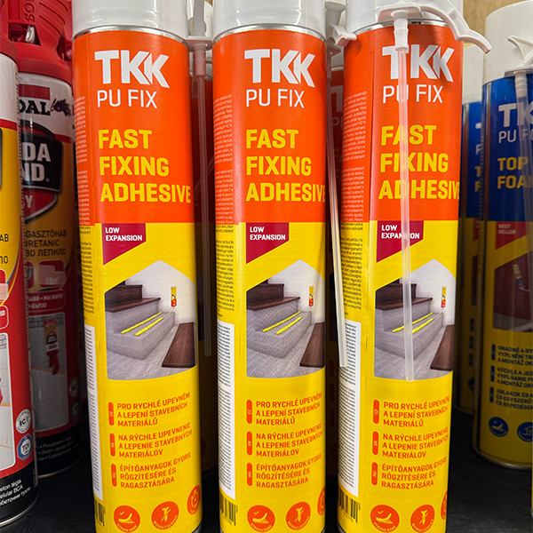 A különféle építőanyagok gyors és rendkívül erős ragasztására szolgáló gyors ragasztó különféle építőanyagok ragasztására és rögzítésére is alkalmas, mint például fa lépcsők, ablakpárkányok, szigetelőanyagok (EPS és XPS polisztirol lapok, OSB-lapok, gipszkartonok), akasztók stb. A ragasztó a levegő páratartalmának hatására keményedik meg. Poliuretán hab kézi adapterrel alkalmazható.
